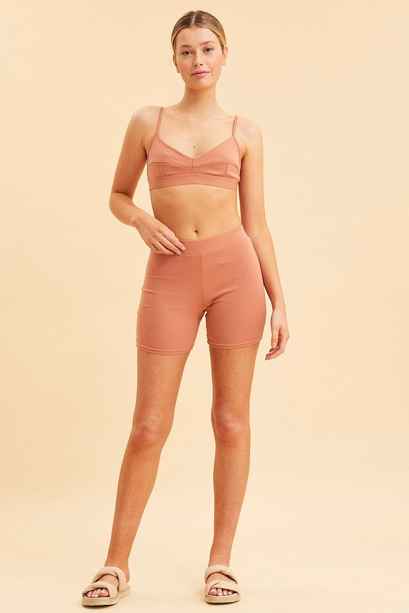 Brown Triangle Bralette Cotton Stretch Seam Detail