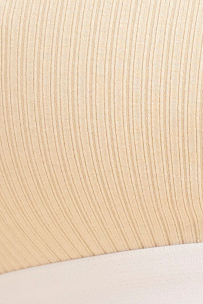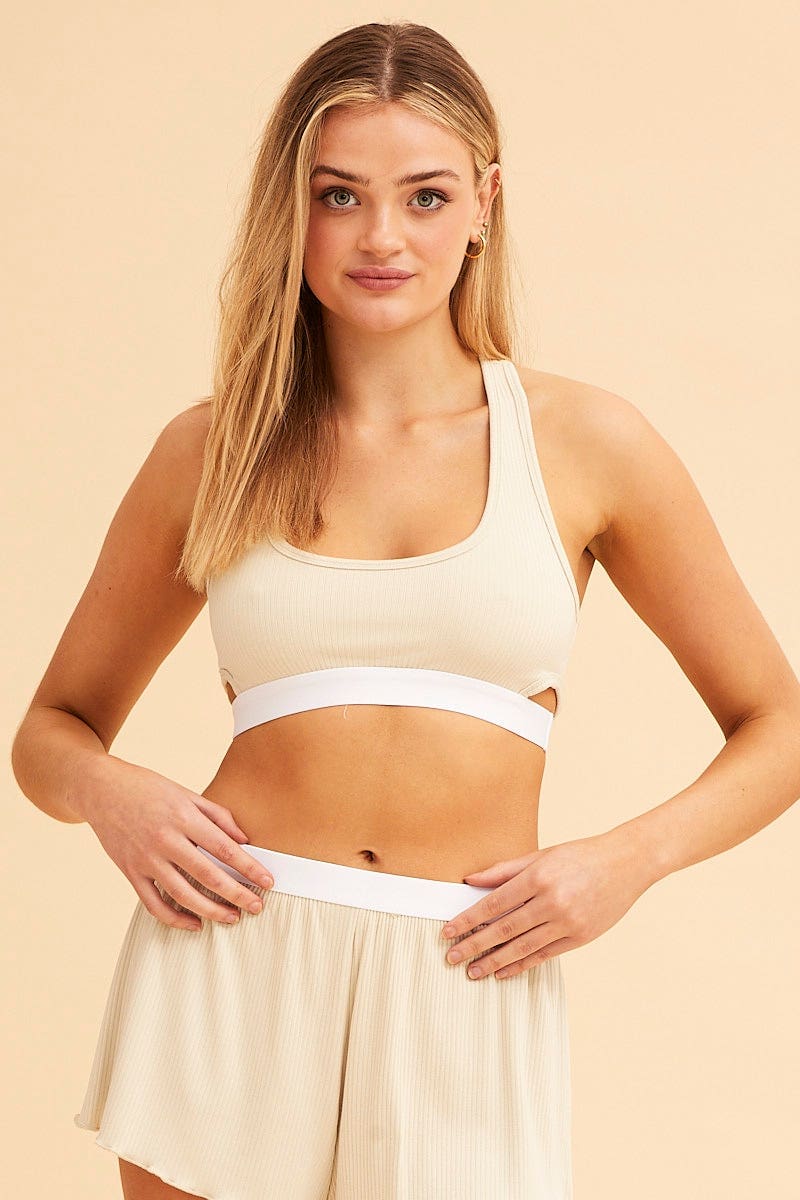 Beige Mia Cotton Stretch Cross Back Crop Top