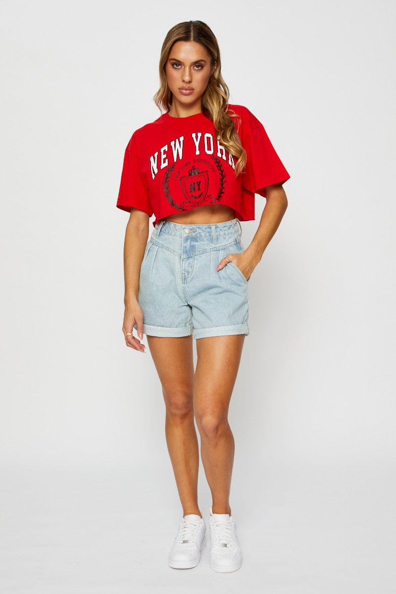 Blue Relaxed Denim Shorts High Rise